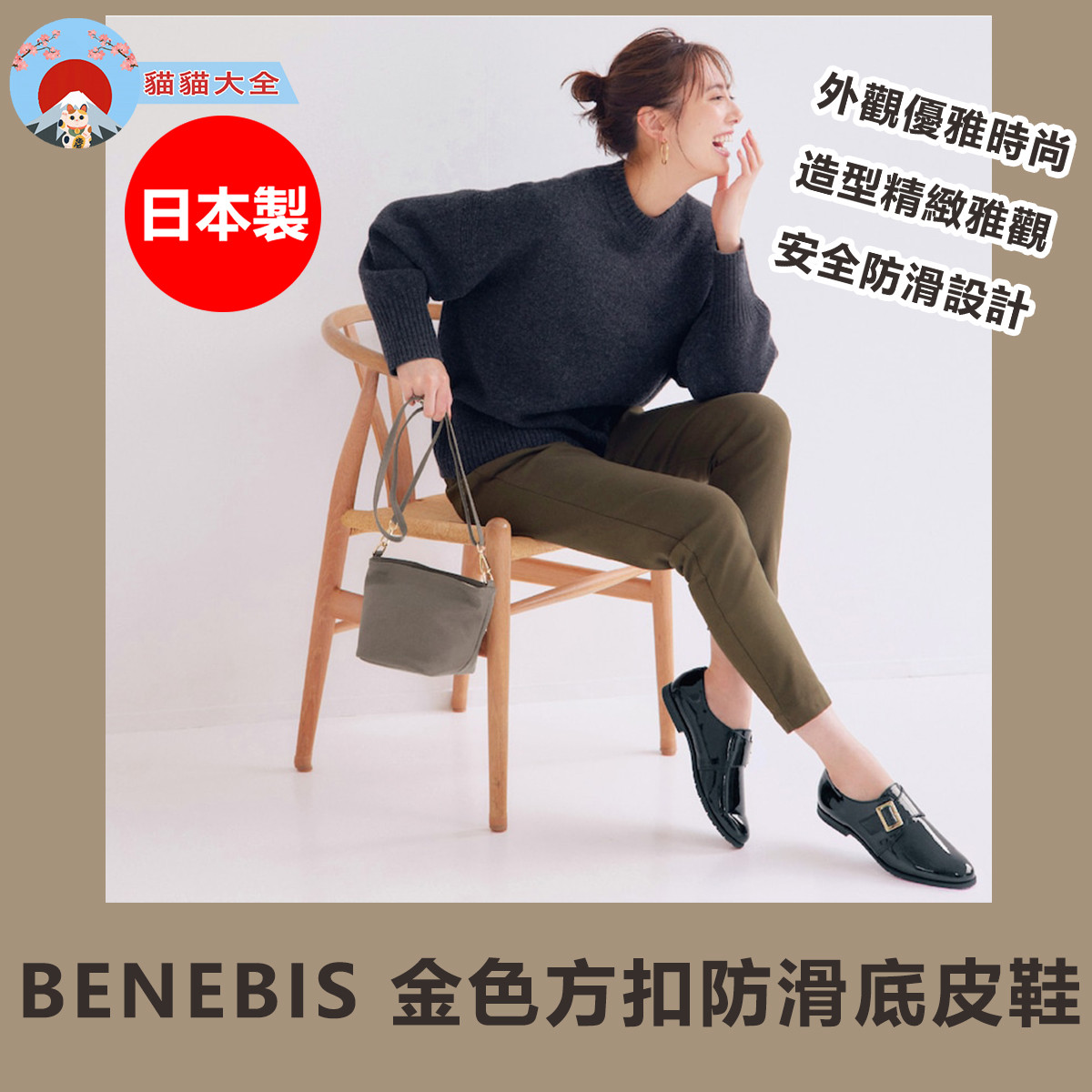 日本製BENEBIS 金色方扣防滑底皮鞋