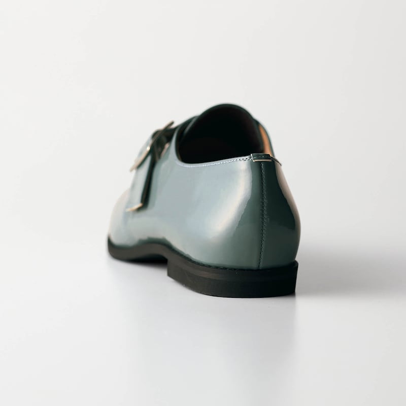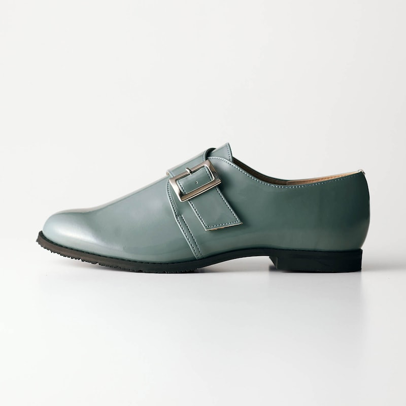 皮鞋配有金色方扣,造型精緻而雅觀、配色成熟有氣質,可輕鬆搭配各種時尚風格,相當有魅力。