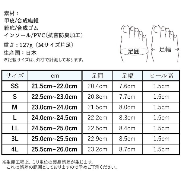 ■素材・成分:【素材】甲皮:合成繊維靴底:合成ゴムインソール:PVC(抗菌防臭加工)【生産国】日本