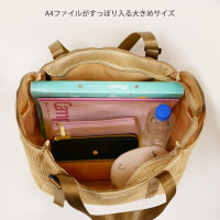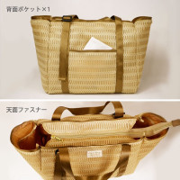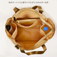 【本体】(約)高さ29cm×横33cm×マチ14.5cm【ショルダー】(約)〜70cm【収納】メイン(オープンポケット×1,ボトルホルダー×2),背面オープンポケット×1【開口】ファスナー【重量】(約)320g